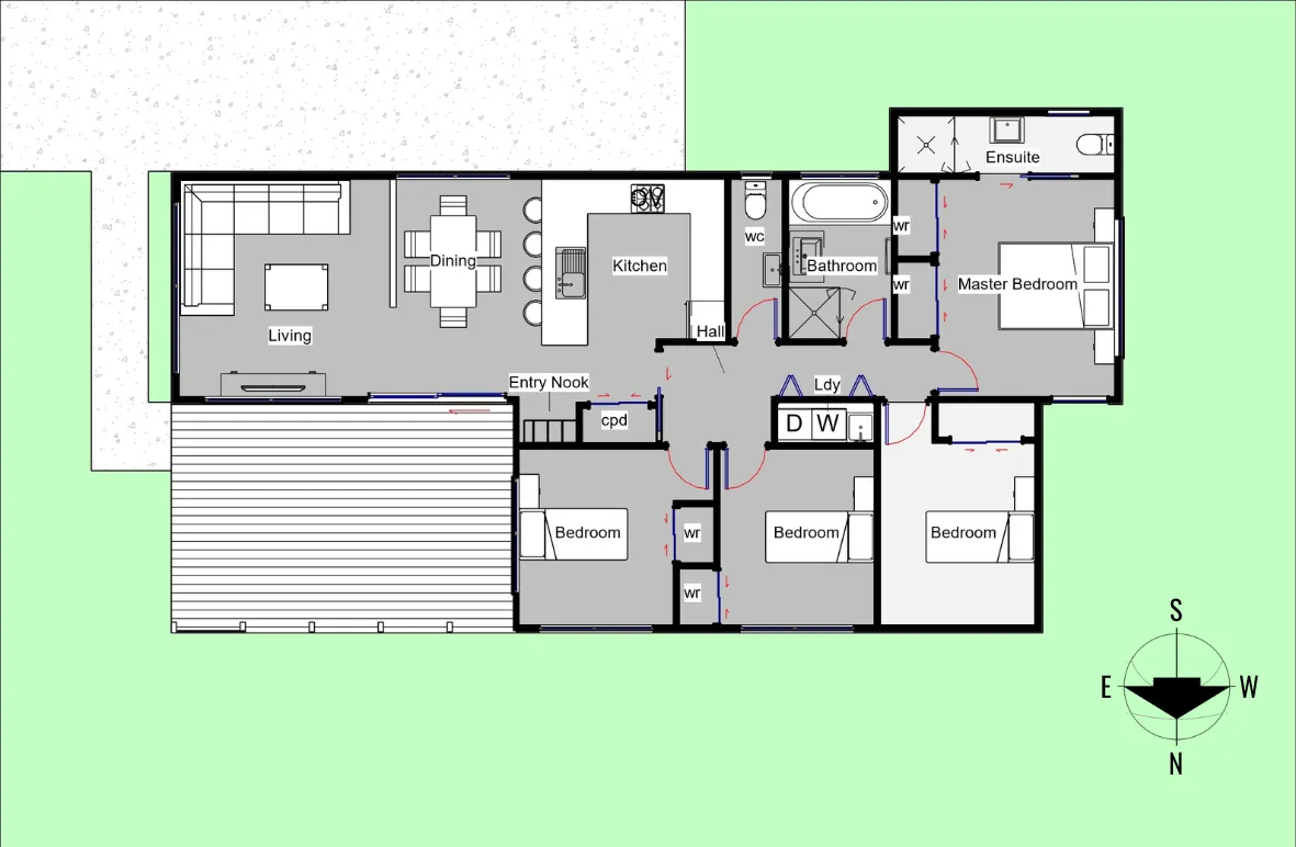 This example 3 Bedroom floor plan can easily be adapted to include an:
